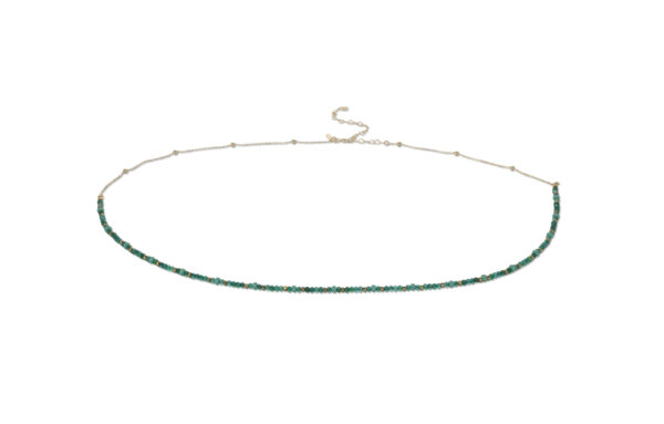 The DARING DIVA belly chain features natural, energetic gemstones, handcrafted with a 14k gold-plated silver extender for adjustable length. Made with jade, hematite, and gold-plated silver, it measures 75-80 cm.