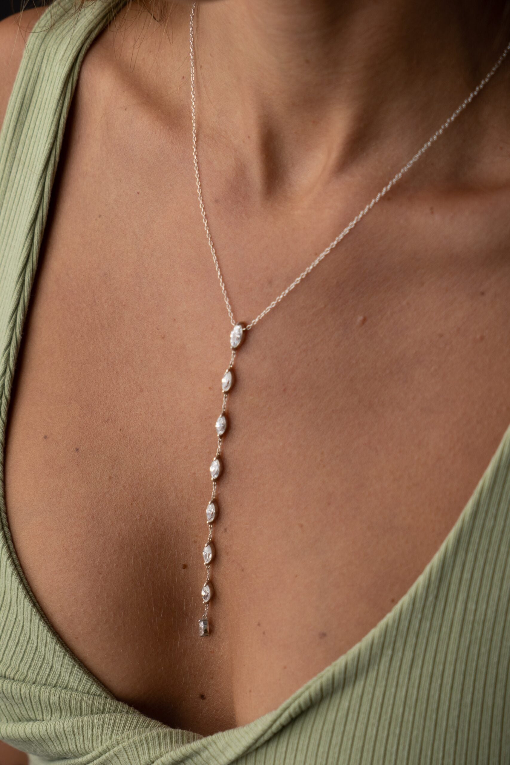 Emanuelle necklace made of a row of 8 white marquise-cut zircons.