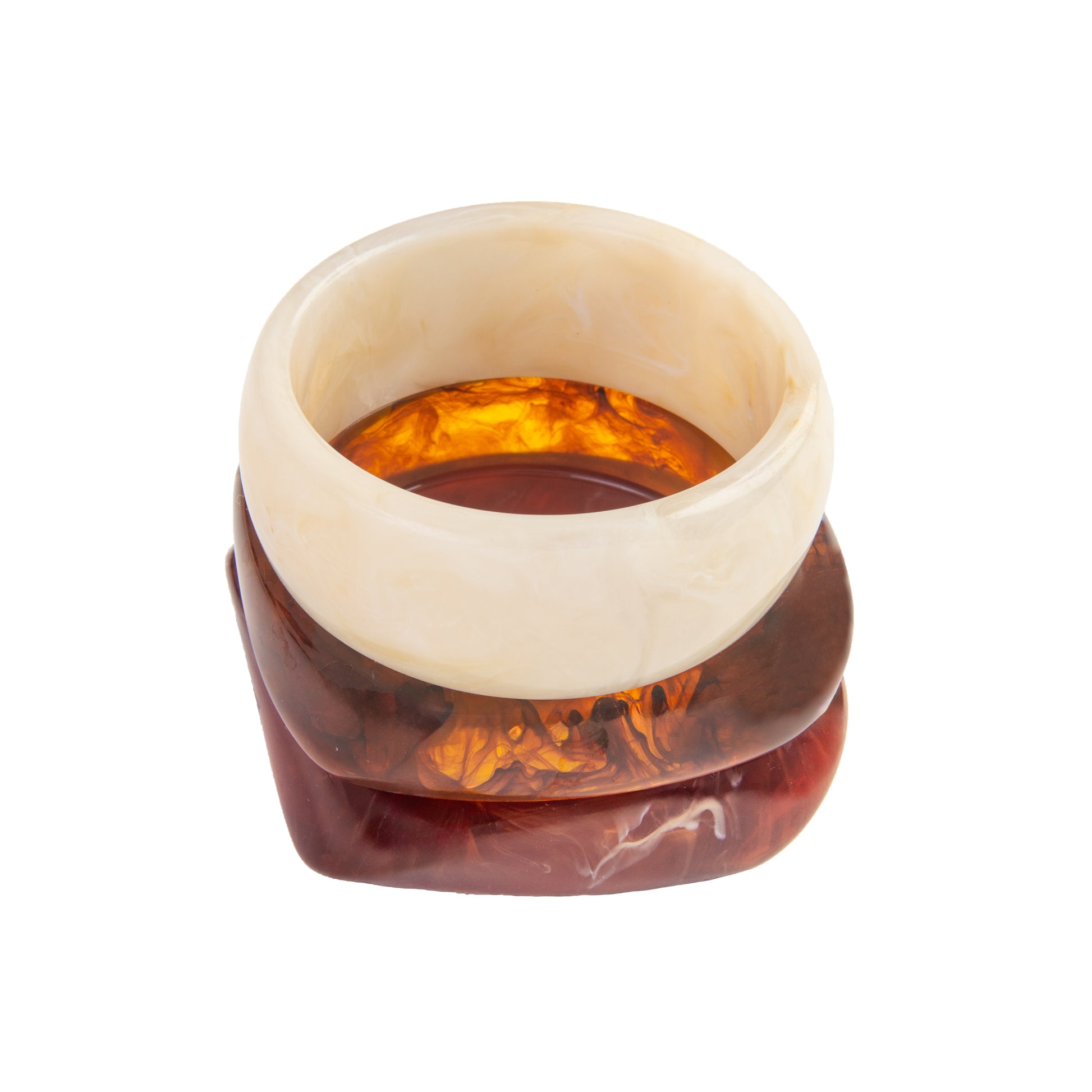 Three warm amber-toned bracelets, each with its own subtle presence.